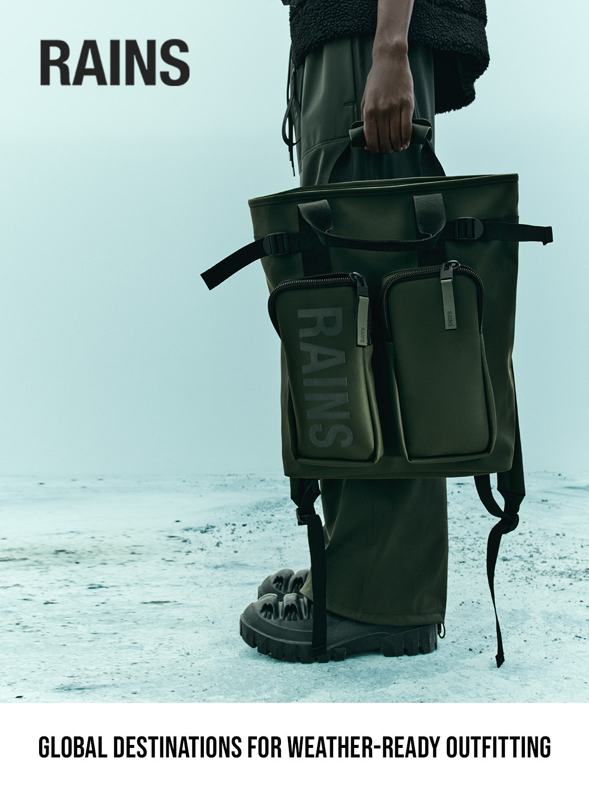 Rains is an outerwear lifestyle brand. Its collections blend a conceptual-meets-functional design approach, a strong urban inspiration, and a signature fabric identity.