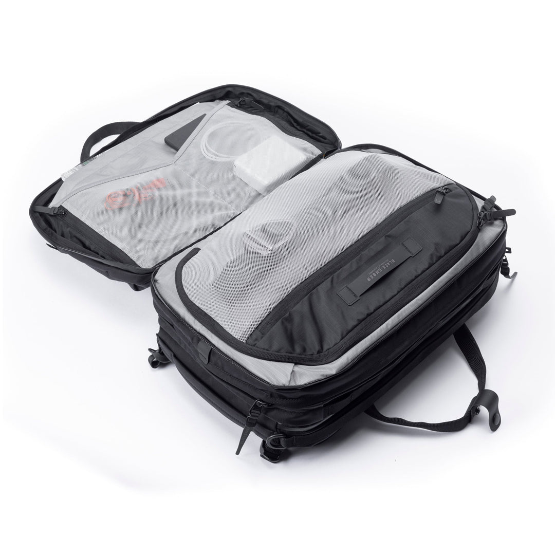 Ready to pack? The FORGE unzips and divides into two separate sections: The organization panel has a place for everything while the storage compartment is made for clothing and bulky items. For long term travel: grab the expansion zipper. The FORGE instantly expands from 20 to 30 liters. If you max out the storage space, compress the FORGE with our magnetic compression straps.