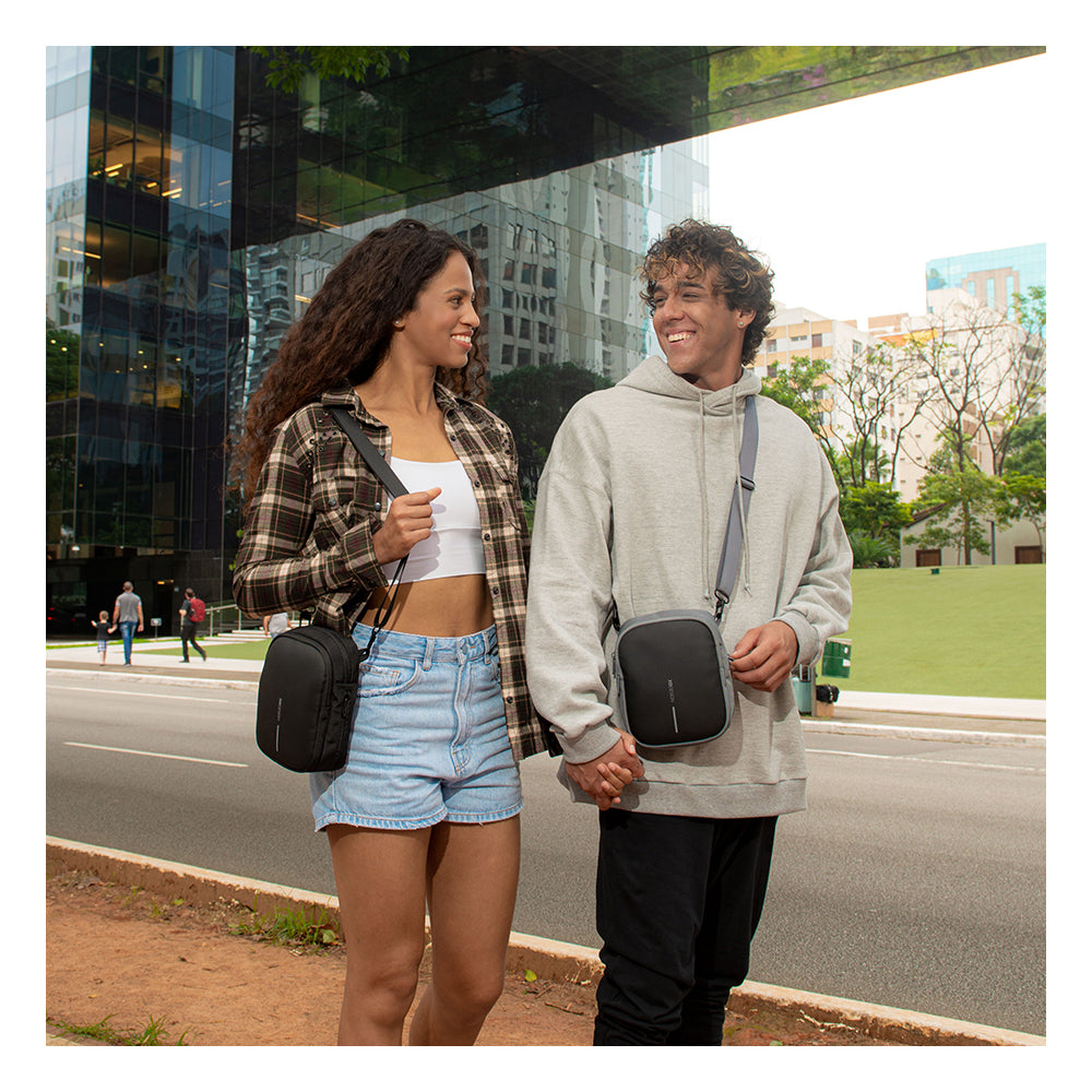 The Boxy Sling is a versatile cross body bag, designed to carry everyday essentials. The pack can be worn around the neck, over the shoulder or around the waist. It has enough capacity to hold a cellphone, wallet or purse, passport, notebook and various other small items. The hidden rear pocket is perfect for discreetly storing cash, cards or other valuable items. The Boxy Sling has a unique hidden water bottle pocket that can stay tucked away when not in use. Made from R-pet fabric with the AWARE™ tracer. With AWARE™, the use of genuine recycled fabric is guaranteed. 27% recycled content.