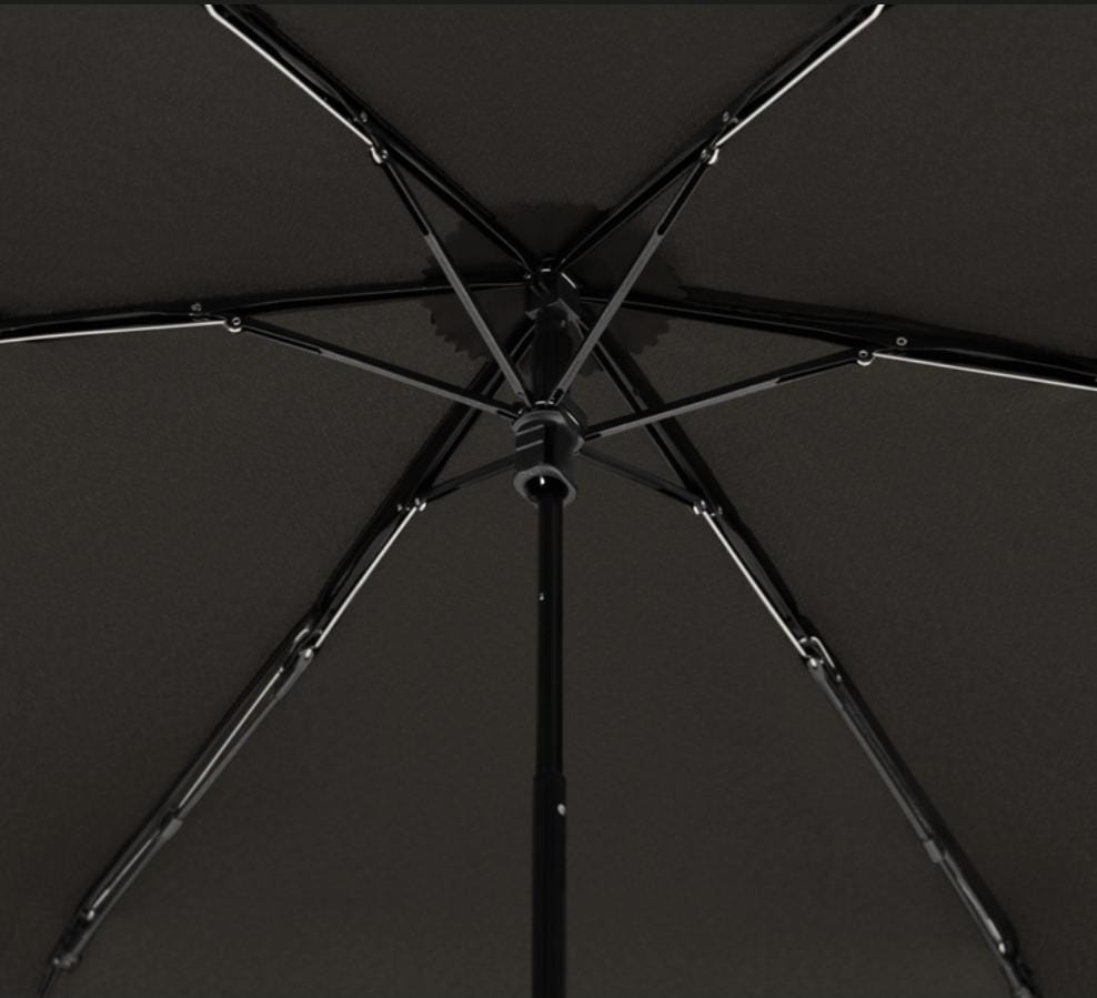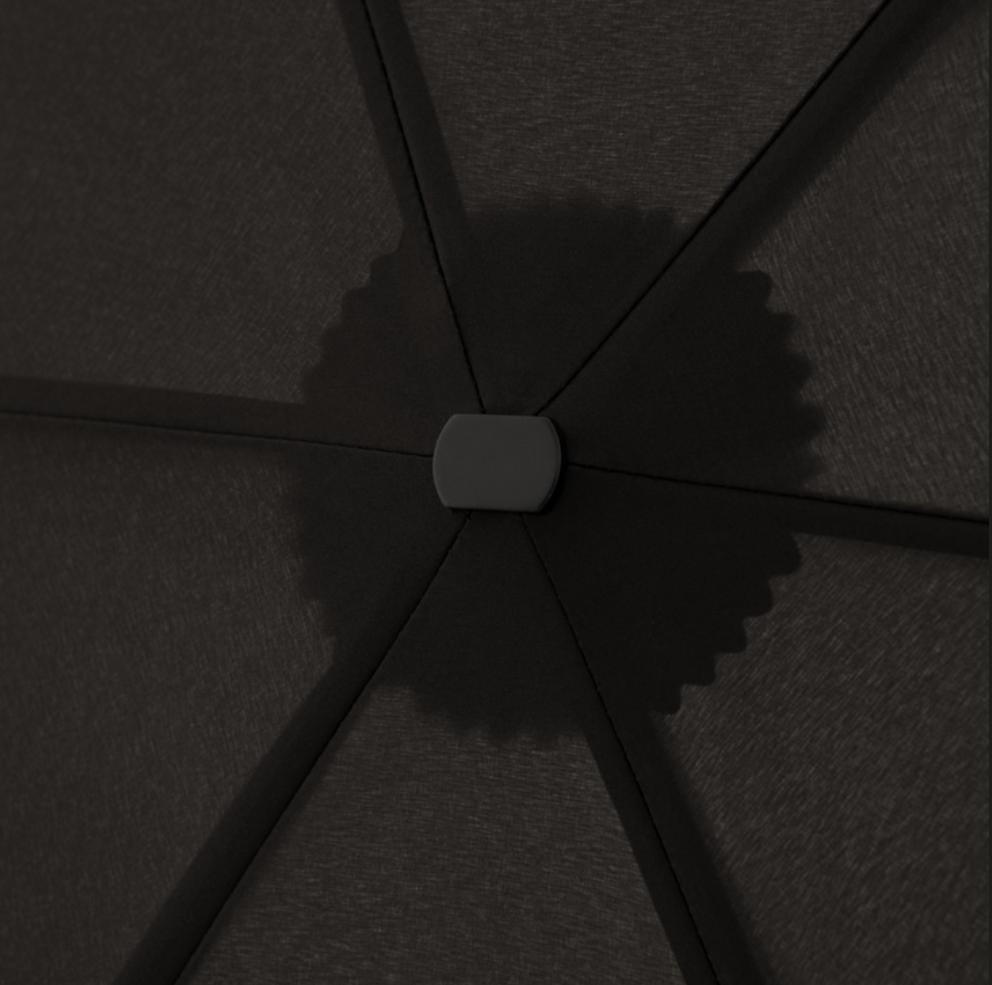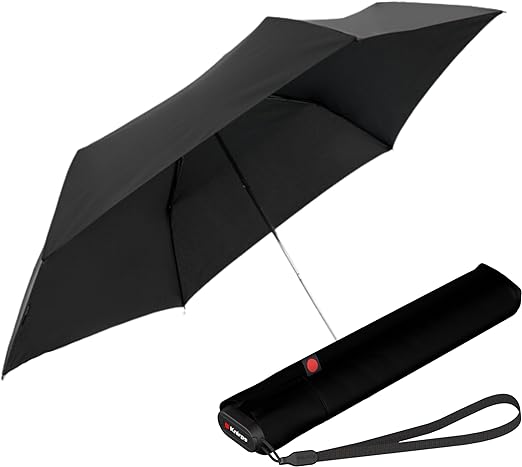 The brand new US.050 has become the lightest pocket umbrella in the range thanks to its extremely flat format and selected materials. The umbrella weighs only 115 g and is therefore lighter than a small apple. Due to its slim dimensions it is the ideal travel companion and can even be stored in any jacket pocket. Despite its compact dimensions, however you will not miss the common Knirps stability and quality. This umbrella is equipped with a canopy diameter of 90 cm and is ideal for one person. The US.050 pocket umbrella can also be used in windy weather. It can withstand wind speeds of up to 100 km/h without being damaged. This is guaranteed by the extremely flexible struts, which even allow the canopy to fold down without breaking. Features Lightest Knirps folding umbrella Quick drying canopy Tripartite ribs facilitate the folding of the glider Modern black frame Compact and lightweight Perfect for travelling Delivery includes a protective cover in matching colours