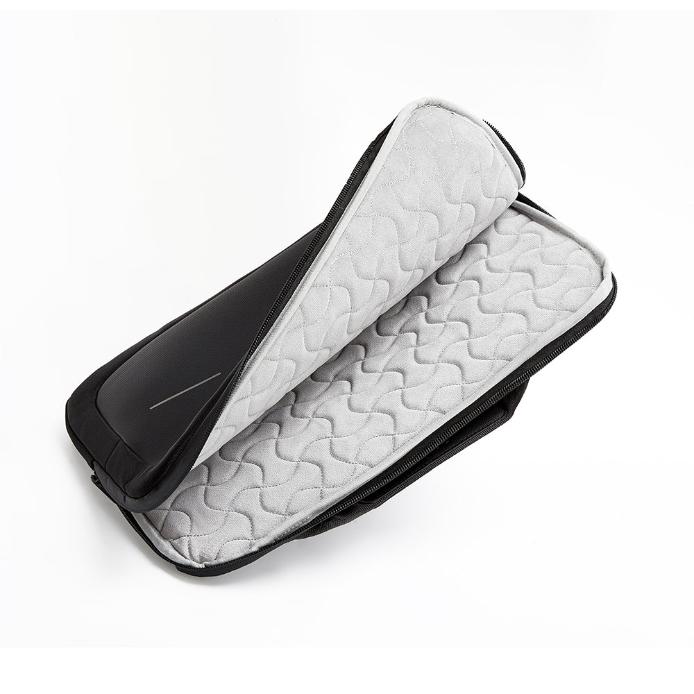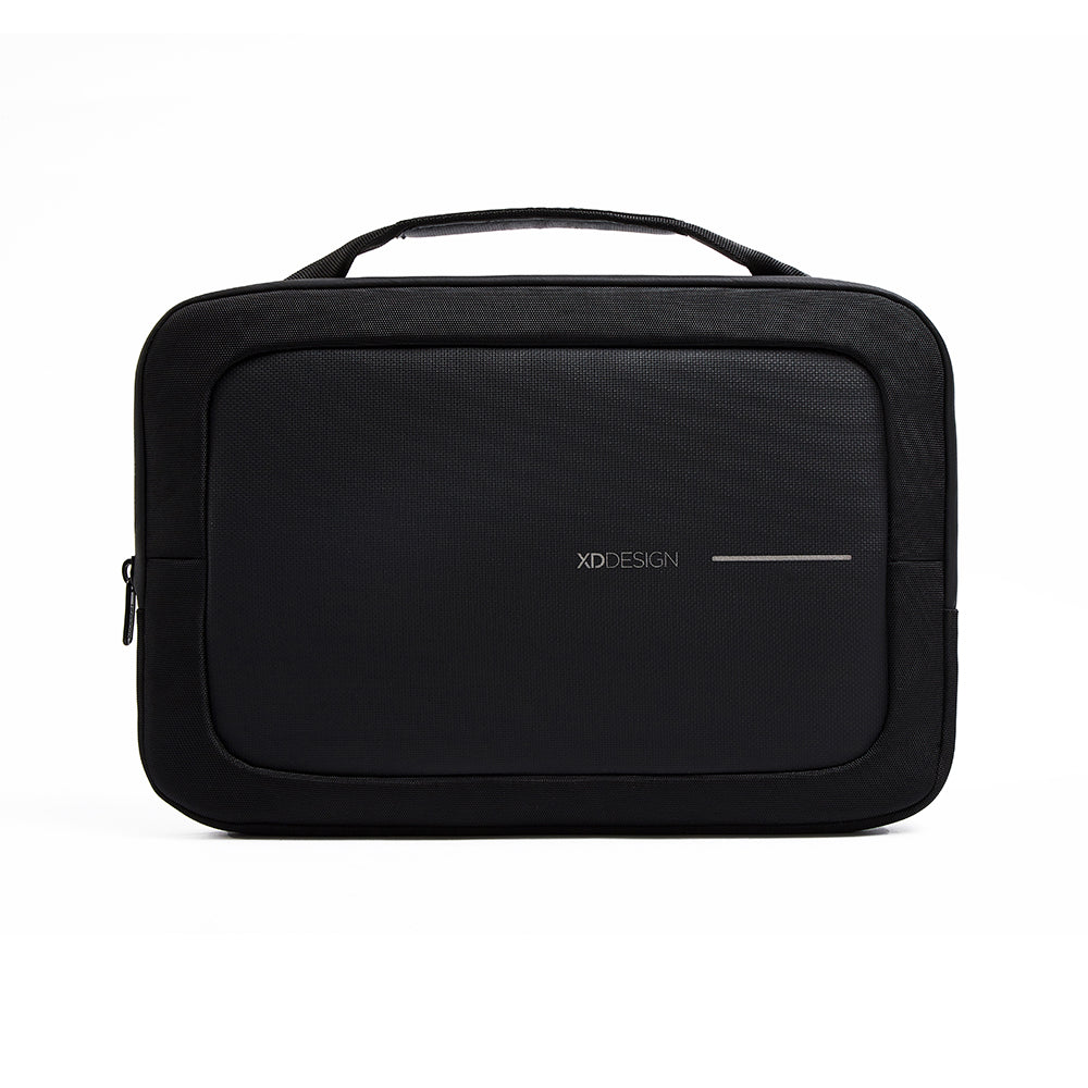 The XD Design Laptop Bag offers reliable laptop protection. Crafted from R-pet 1200D fabric and textured PU, it features a water-repellent finish. The top handle and shoulder strap provide versatile carrying options, while the rear pocket offers convenient storage for essential items. The waterproof zipper and textured fleece lining add an extra layer of resilience. Made from R-pet fabric with the AWARE™ tracer. With AWARE™, the use of genuine recycled fabric is guaranteed. 17% recycled content.