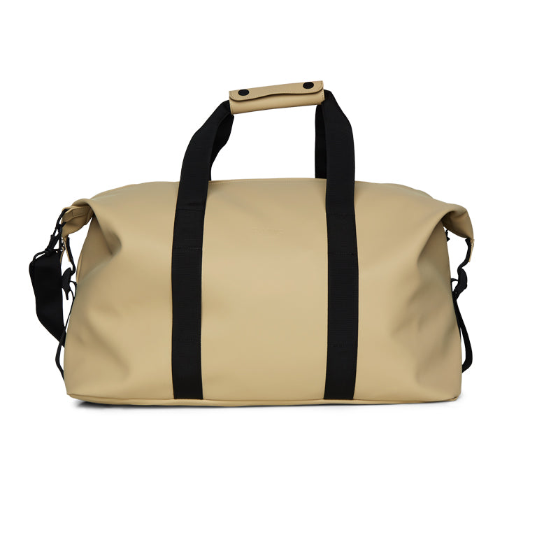 Weekend Bag is Rains’ interpretation of a classic travel bag. This essential Rains bag features a spacious main compartment, sturdy webbing handles, a detachable shoulder strap and adjustable lock slider buckles on the sides. Weekend Bag is made from a matte, waterproof fabric and completed with a water-resistant zipper and matte hardware
